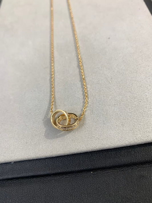 [Mystic]LOVE NECKLACE DOUBLE RING Double-Circle Diamond Belt GOLD